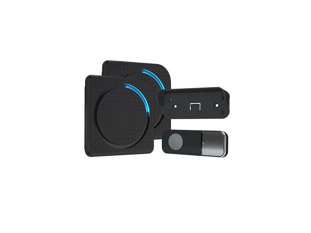Bezdrátová sada zvonků se dvěma přijímači a jedním tlačítkem zajišťuje spolehlivé pokrytí i ve větších prostorech. Nabízí dosah až 200 m ve volném prostoru, 36 melodií, 4 úrovně hlasitosti a jednoduchou instalaci bez nutnosti kabeláže. Díky funkci „learning code“ lze systém rozšířit o další zvonky či tlačítka.