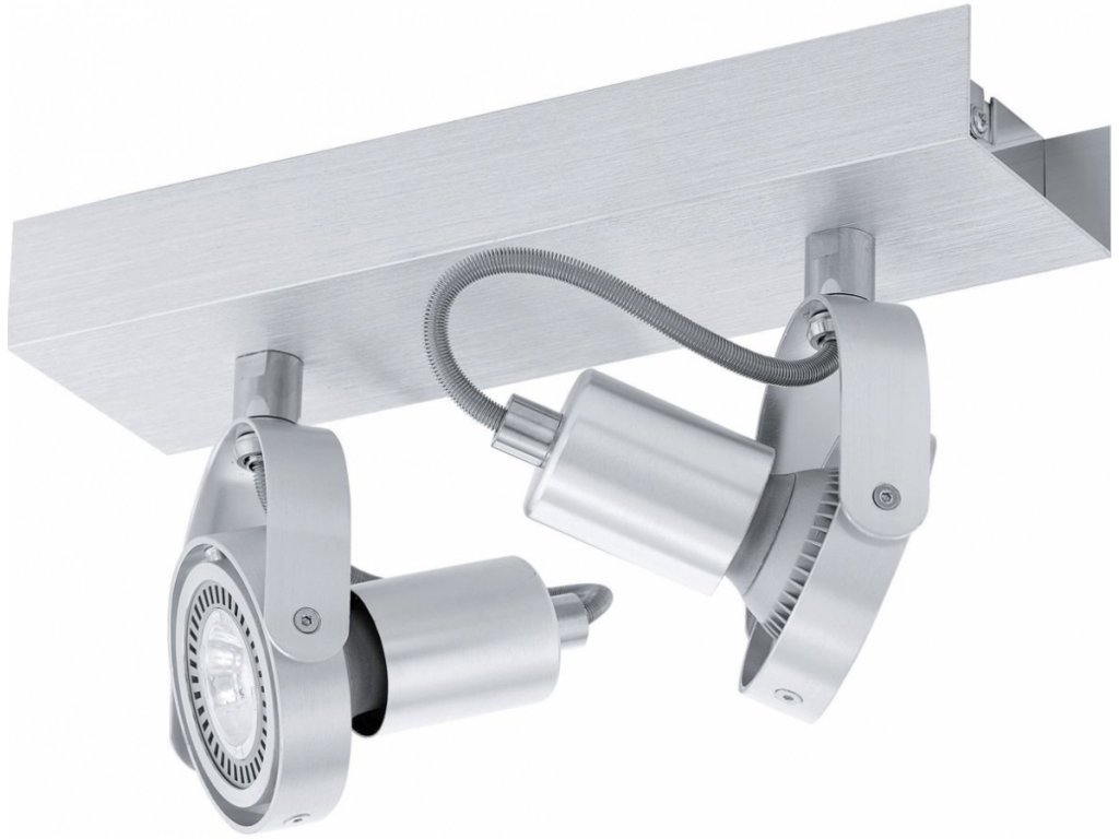 Stylové LED bodové svítidlo Novorío 94643 v elegantním kartáčovaném hliníku, s otočnými dvěma hlavicemi a paticí GU10, které jsou součástí balení.