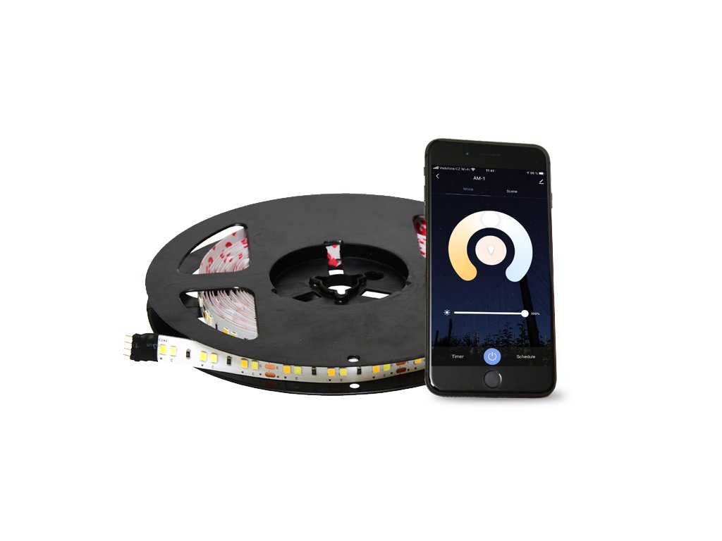 inteligentní stmívatelný LED pásek o délce 5 metrů s bílou barvou světle v rozmezí od 3000K do 6000K. LED pásek lze ovládat jak pomocí přibaleného dálkového ovladače, tak i pomocí mobilního telefonu/tabletu s bezplatnou aplikací, kterou si můžete stáhnout pro systémy Android 5.0 a vyšší nebo iOS 10.0 a vyšší.