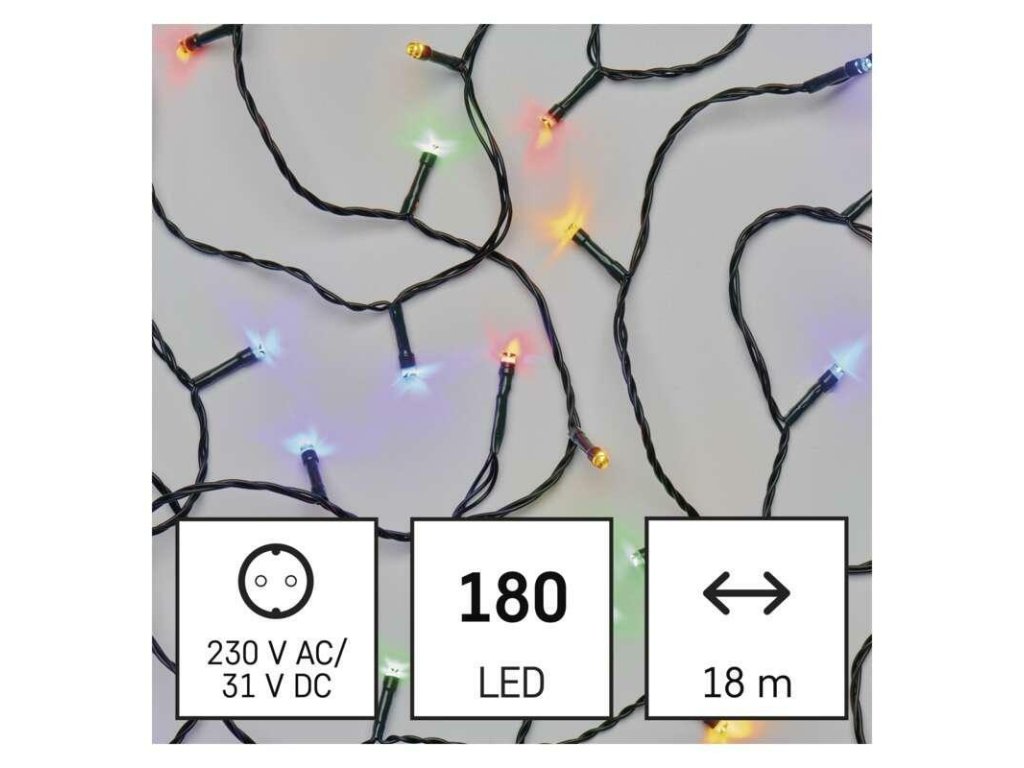 EMOS LED vánoční řetěz, 18 m, venkovní i vnitřní, multicolor, časovač D4AM04