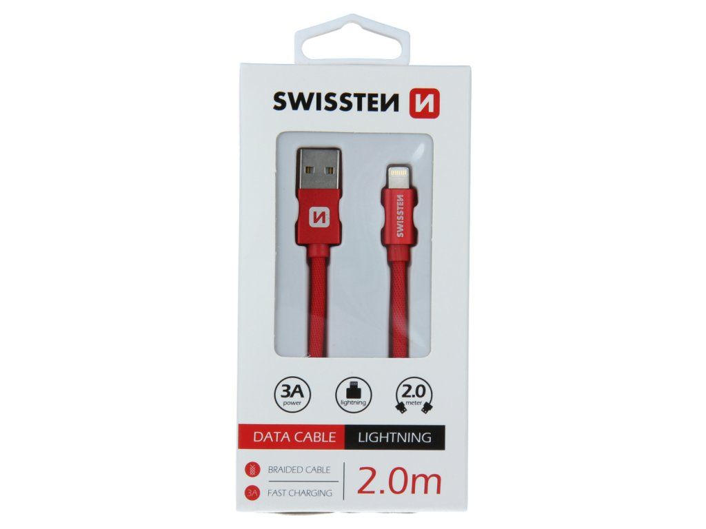 Kabel USB Lightning textilní 2m 3A červená - SWISSTEN 71523306