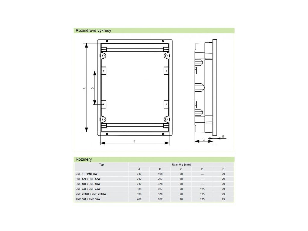 Řada plastových rozvodnic PNF je určena pro podomítkovou montáž v domovních i běžných instalačních aplikacích. Díky krytí IP40 jsou vhodné pro vnitřní použití.