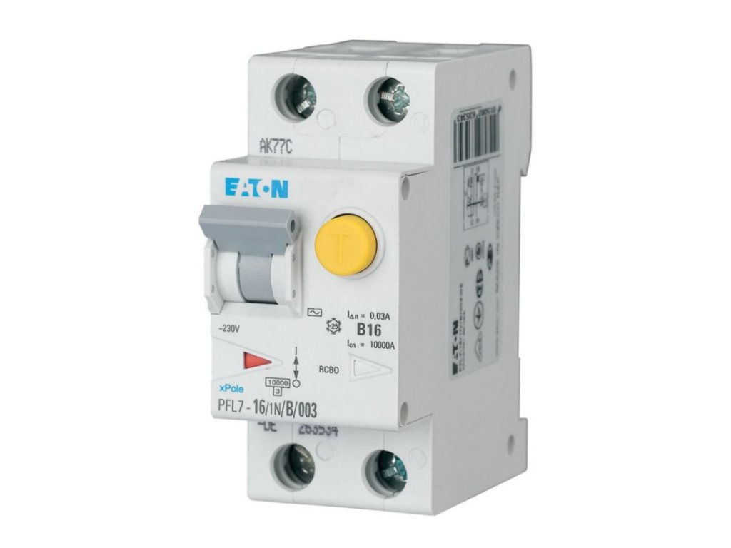 Kombinovaný proudový chránič s jističem EATON 263535 (PFL7-16/1N/B/003-A-DE) spojuje dvě základní funkce elektrické ochrany – ochranu proti úniku proudu (RCD) a ochranu proti přetížení a zkratu (MCB) – v jednom kompaktním zařízení.