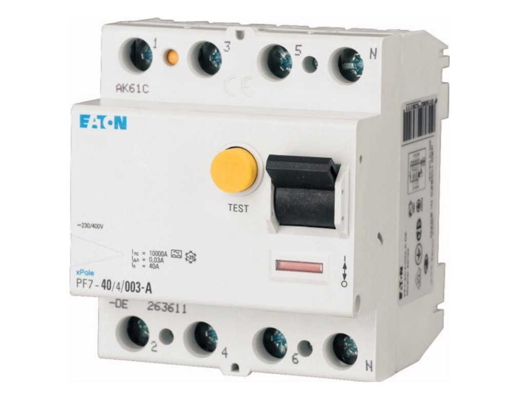 Tento RCBO EATON 40 A / 30 mA s charakteristikou A je vhodný zejména pro výkonové a indukční obvody, kde dochází ke krátkodobým proudovým špičkám (např. motory, dílenské stroje, čerpadla).