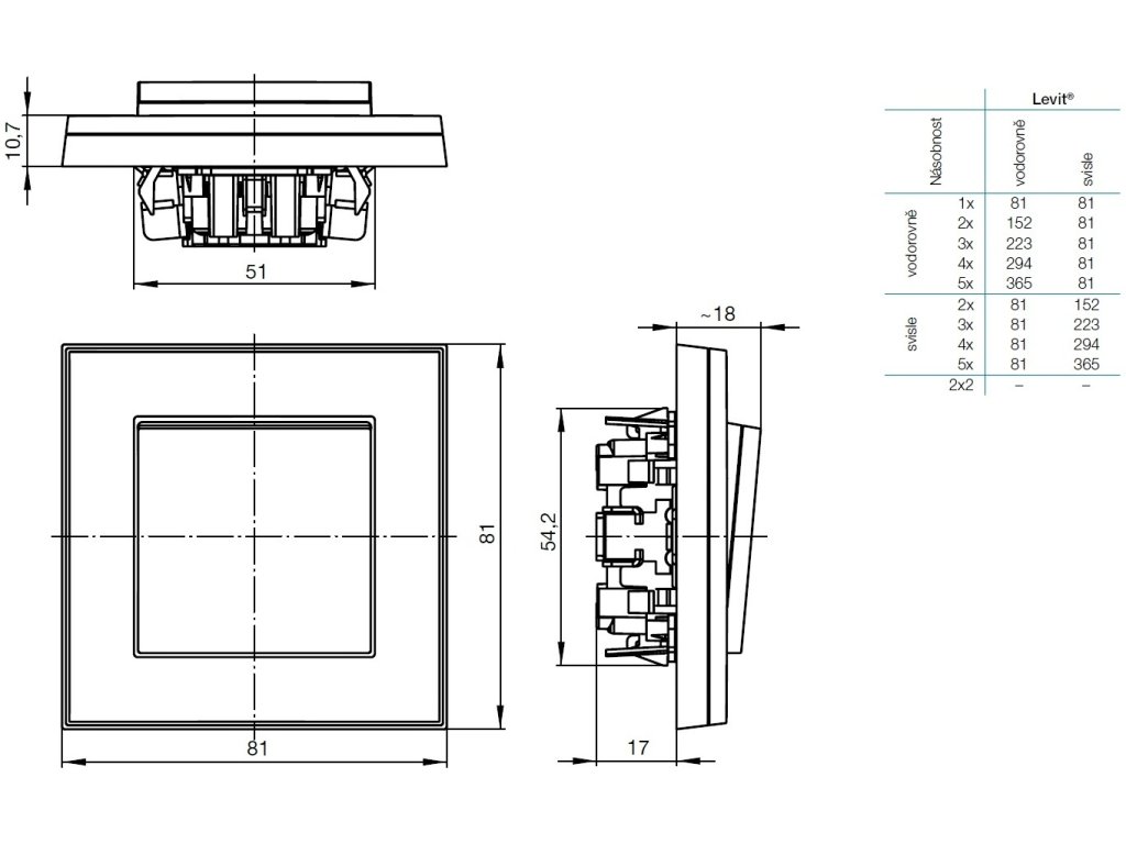 Zásuvky a vypínače Levit® od české značky ABB vynikají elegantním designem, jednoduchými liniemi a pestrými barvami. Nabízí dvoubarevné rámečky i bezpečnější zásuvky s clonkami. Jsou dostupné v deseti barevných variantách a lze je montovat vodorovně i svisle. Systém se skládá ze tří částí: přístroje, krytky a rámečku, který může být až pětinásobný. Výhodou je libovolná kombinace rámečků a krytek.