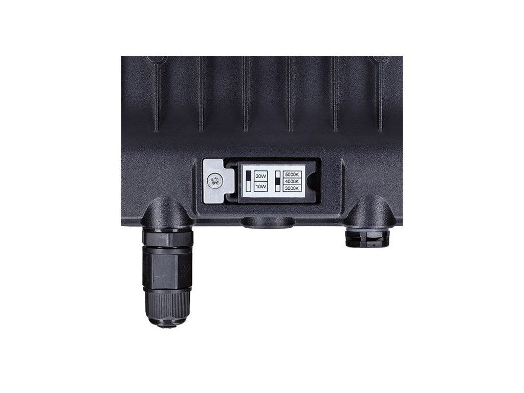 Vysoce výkonný LED reflektor řady TOP s maximálním výkonem 20 W a světelným tokem až 2 600 lm. Nabízí možnost přepínání výkonu i teploty světla (3000K–5000K), odolnost IP65 pro venkovní použití a praktický voděodolný konektor pro snadnou instalaci.