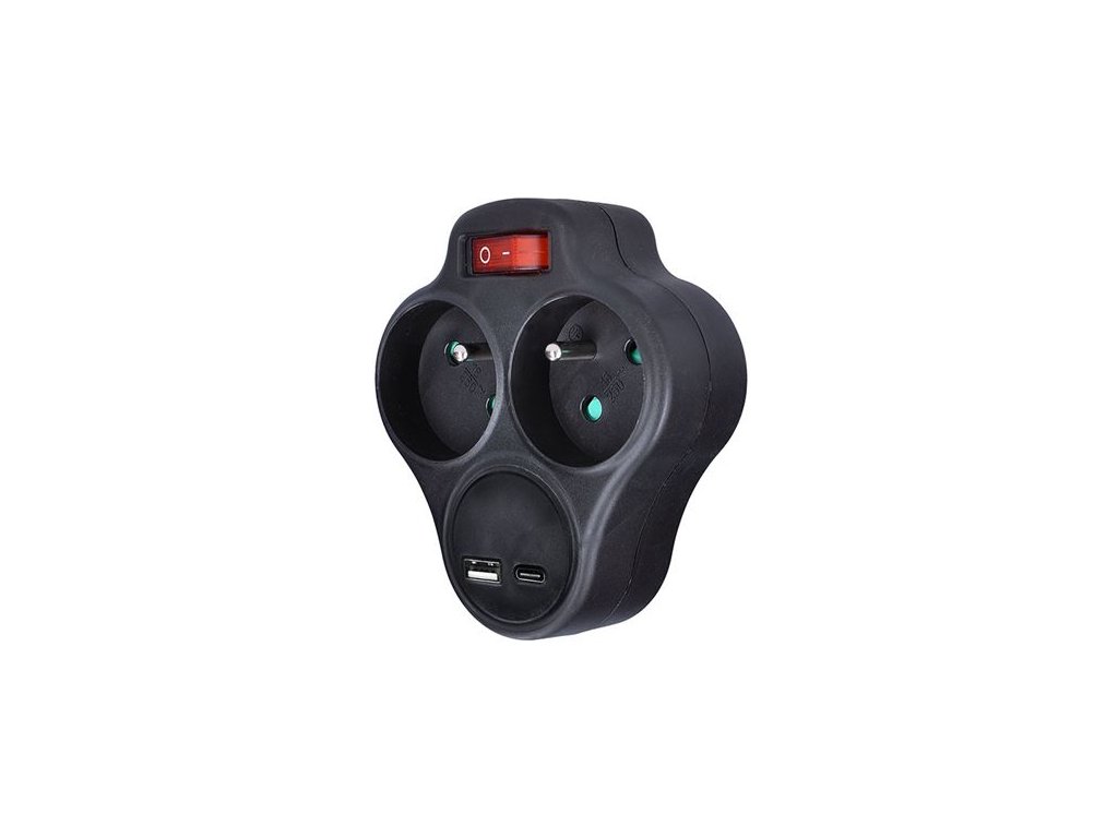 Praktická rozbočka se dvěma zásuvkami, vypínačem a rychlonabíjecími USB porty (USB-A a USB-C). Umožňuje připojit elektrické spotřebiče a současně rychle nabíjet mobilní zařízení. Díky dětským pojistkám a podsvícenému vypínači je bezpečná a snadno ovladatelná.